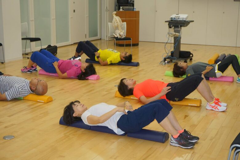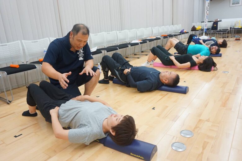 脳科学に基づく体幹(コア)トレーニングをストレッチポール等を用いて行い、正しい姿勢や中心軸の感覚を知る事ができました。