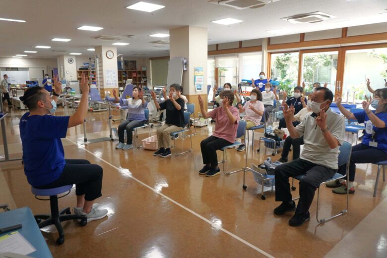 「365歩のマーチ♪」に合わせて手足を動かすコグニサイズでは、「間違えた~!」と笑い声が飛び交い、会場は和やかな雰囲気に。