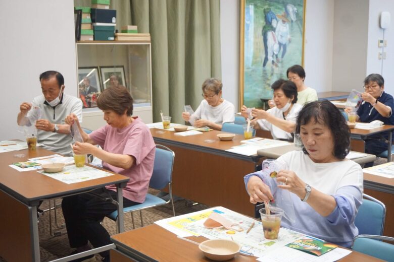 イベントの締めくくりは、みどり苑調理師が作ったキウイ×緑茶のロコケン特製トロピカルドリンク。